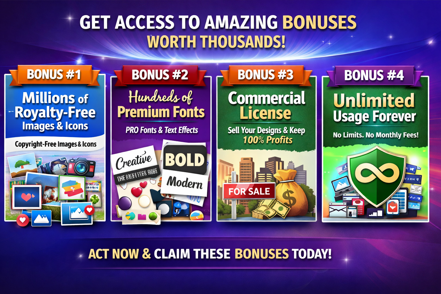 Elevate your designs with millions of copyright free images, icons and assets. You never need to buy images, icons, vectors or design assets again. Save thousands in fees! - Bonus #2 Hundreds of Premium Fonts